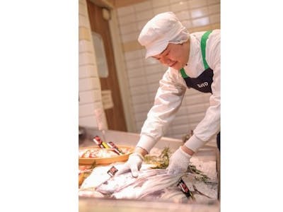 主にお魚の切り身などをパックし、売場に並べるお仕事です。