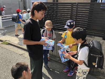 下校する小学生に習い事のチラシを配布します。事前に配布ポイントをお知らせします。