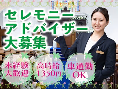 新式場続々オープン 高時給1350円♪セレモニーアドバイザー大募集*週3×4h~勤務OK◎未経験大歓迎★20代~60代のしゅふさん活躍中☆交通費支給★車通勤OK