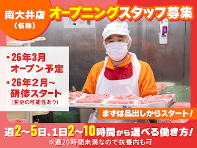 <精肉>開店特別時給!<日中だけ×短時間OK>3月オープニング!立会川駅近く・大井町エリアに新規オープン!午後からの空き時間に稼げるお仕事です!