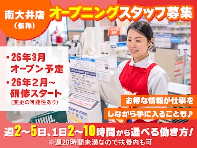 <レジ>開店特別時給!<3月オープニングのお店><午前中だけの短時間>立会川駅近く・大井町エリアに新規オープン!未経験OK★久しぶりの職場復帰も歓迎!