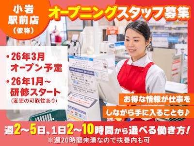 <レジ><日中だけ×短時間OK>3月オープニング!小岩駅スグ!1日2h~OK!Wワークや家事との両立に◎