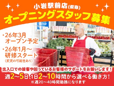 <カゴ・カート回収><3月NEWOPEN!>小岩駅スグ!黙々と動き回る仕事が好きな方にピッタリ!未経験OK◎週2日~、ロングOK◎シフトは曜日固定