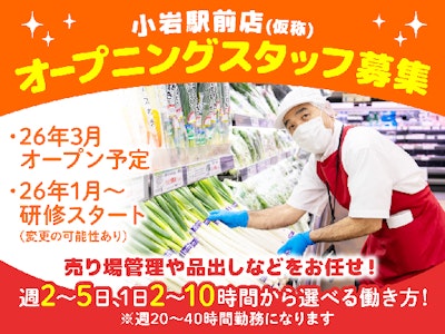 <青果><3月NEWOPEN!>小岩駅スグ!売場をつくるやりがい。裏方でも、お客様の笑顔に繋がります週2日~、ロングOK◎シフトは曜日固定
