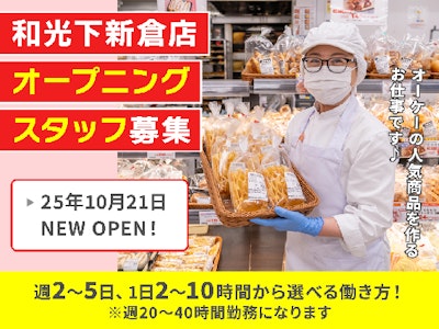 <ベーカリー><地域初出店>話題のスーパー&ピカピカの新店!商品を並べるだけじゃない。売場をつくる仕事です。週2日~、ロングもOK◎シフトは曜日固定♪