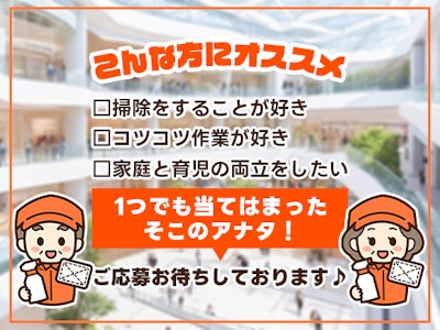 【週2日~OK×実働5時間】ご家庭の掃除の延長線上で出来るカンタンお仕事♪【ショッピングモールの清掃スタッフ】女性活躍中!扶養内&WワークもOK◎