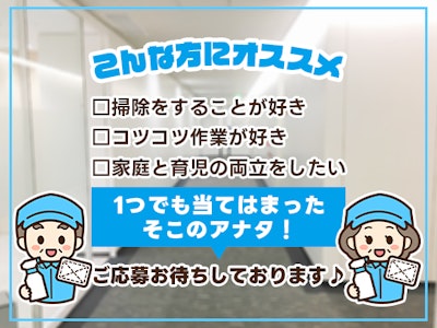 【実働2時間】シフトは2パターンから選べる!【オフィスビルの清掃STAFF】未経験OK×扶養内勤務OK!家事の延長線上で働ける♪