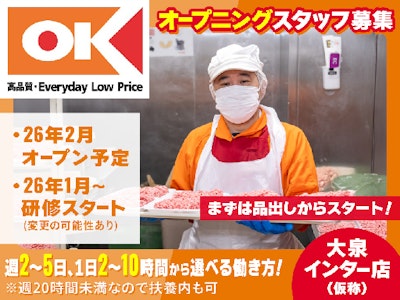 <精肉><オープニング♪170名以上の大募集!><午前中だけの短時間>大泉学園駅・練馬区大泉町エリアにオープン!自転車通勤応相談!未経験OK!週2日~・2h~!