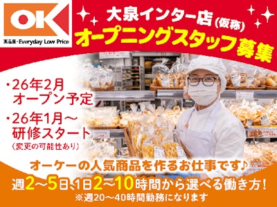 <オープニング♪170名以上の大募集!>大泉学園駅・練馬区大泉町エリアにオープン!自転車通勤応相談!ベーカリー主力募集!週2日~、ロングOK◎