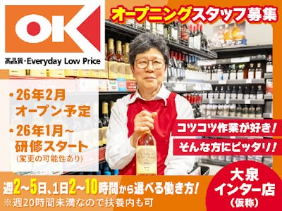 <品出し><日中だけ×短時間OK>オープニング♪100名以上の大型採用!大泉学園駅・練馬区大泉町エリアにオープン!自転車通勤応相談!家事の合間に!