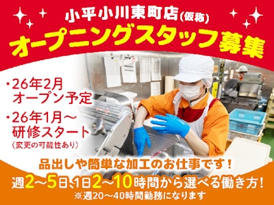 <精肉><2月NEWOPEN!100名以上の大型採用♪>萩山駅近く・小川東町エリアにオープン♪いい仕事がしたい方に。週2日~、ロングOK◎シフトは曜日固定