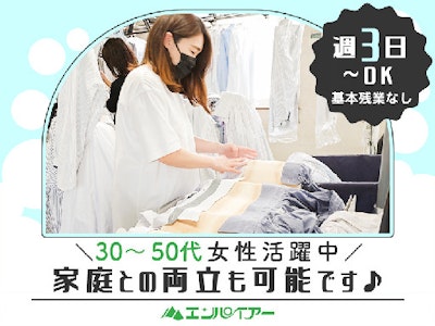 [職種名]: クリーニング工場での軽作業(クリーニングの社割有)