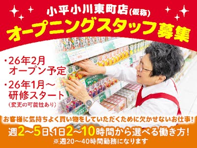 <品出し><2月NEWOPEN!100名以上の大型採用♪>萩山駅近く・小川東町エリアにオープン♪“売場をつくる”仕事です!週2日~、ロングOK◎シフトは曜日固定