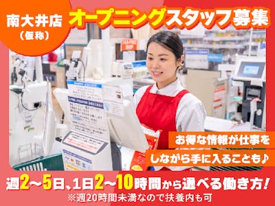 <レジ>開店特別時給!<オープニング募集!><授業終わりにちょうどいい♪>立会川駅近く・大井町エリアに新規オープン!夕方だけ×短時間★授業後に◎