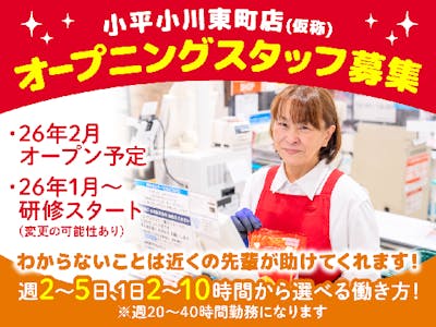 <レジ><2月NEWOPEN!100名以上の大型採用♪>萩山駅近く・小川東町エリアにオープン♪“ありがとう”が聞ける毎日。週2日~、ロングOK◎シフトは曜日固定