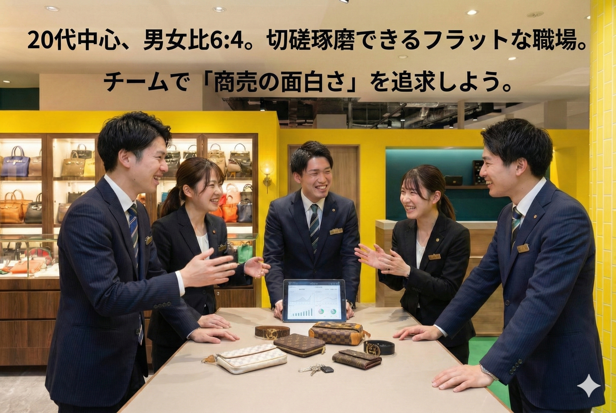 ハイブランドの販売・買取を通じて、お客様との会話を楽しみながら信頼関係を築く仕事です。