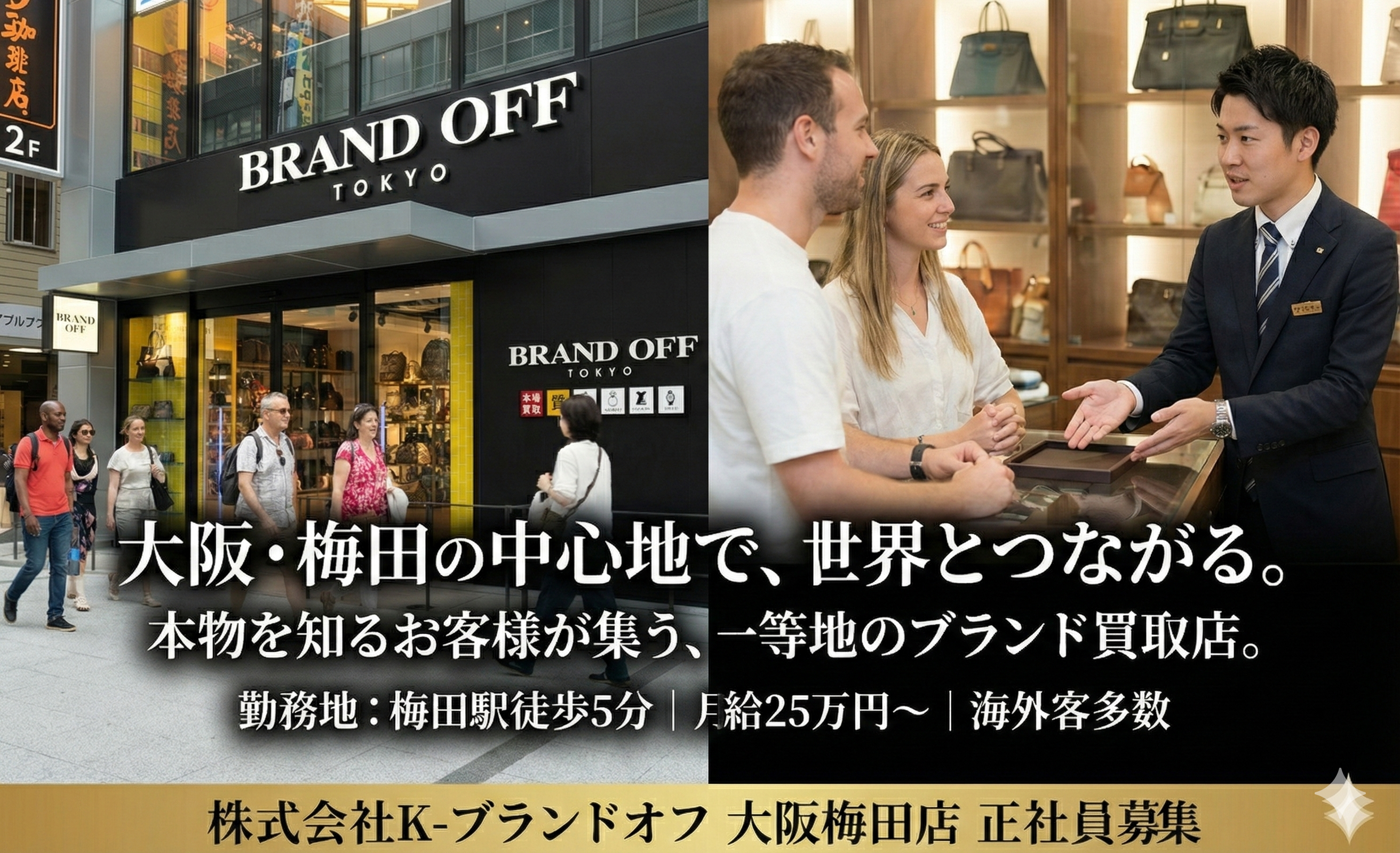 ブランド買取スタッフ/賞与あり/完全週休2日制/社会保険完備/大阪市北区