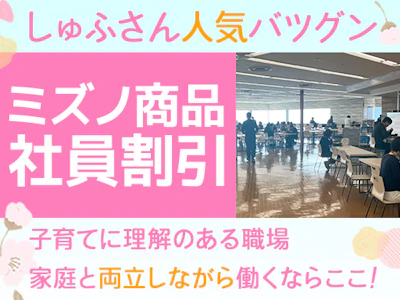 15時終業×土日祝休み。ミズノ社員食堂の調理補助・レジで家族との時間をアップデート☆「おかえり」に間に合う、理想のワークスタイル♪ミズノ製品がお得に買える☆