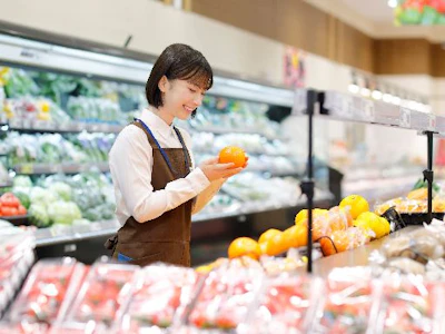 [職種名]: ドラッグストア内の青果担当スタッフ