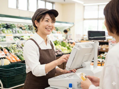 スーパーのレジスタッフとして