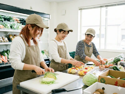 [職種名]: スーパーの野菜のバック詰め・加工スタッフ