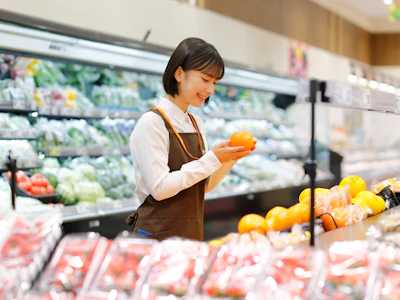 [職種名]: ドラッグストア内の青果担当スタッフ